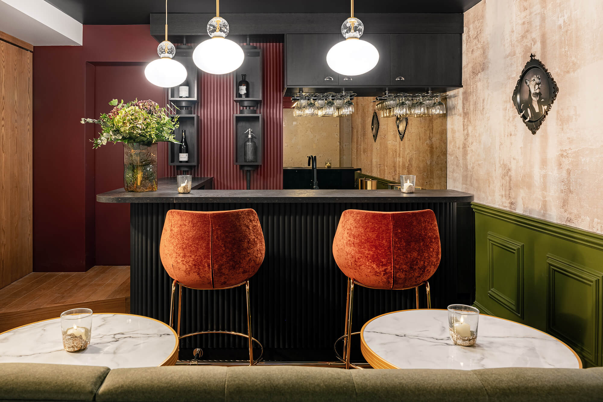 L’aire de cocktail dispose du plus beau point de vue sur le château et sur les collines pour vous offrir un dépaysement en toutes saisons.