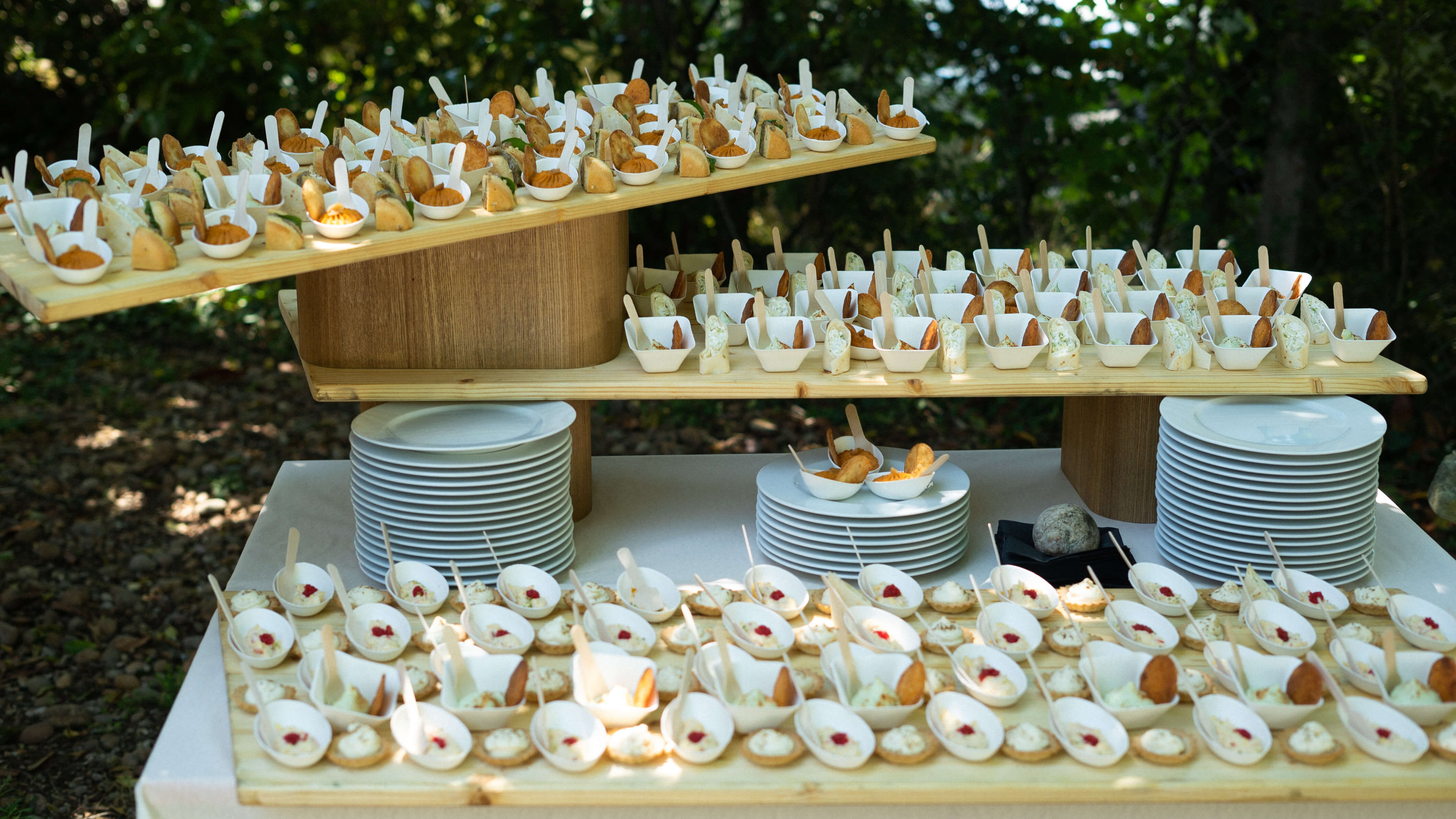 On vous installe un beau buffet type cocktail, nos pièces sont disposées selon vos envies et le thème de votre événement. Cette offre peut s'accompagner de service des boissons, d'ateliers culinaires selon le lieu, et comprend la vaisselle et la verrerie.
