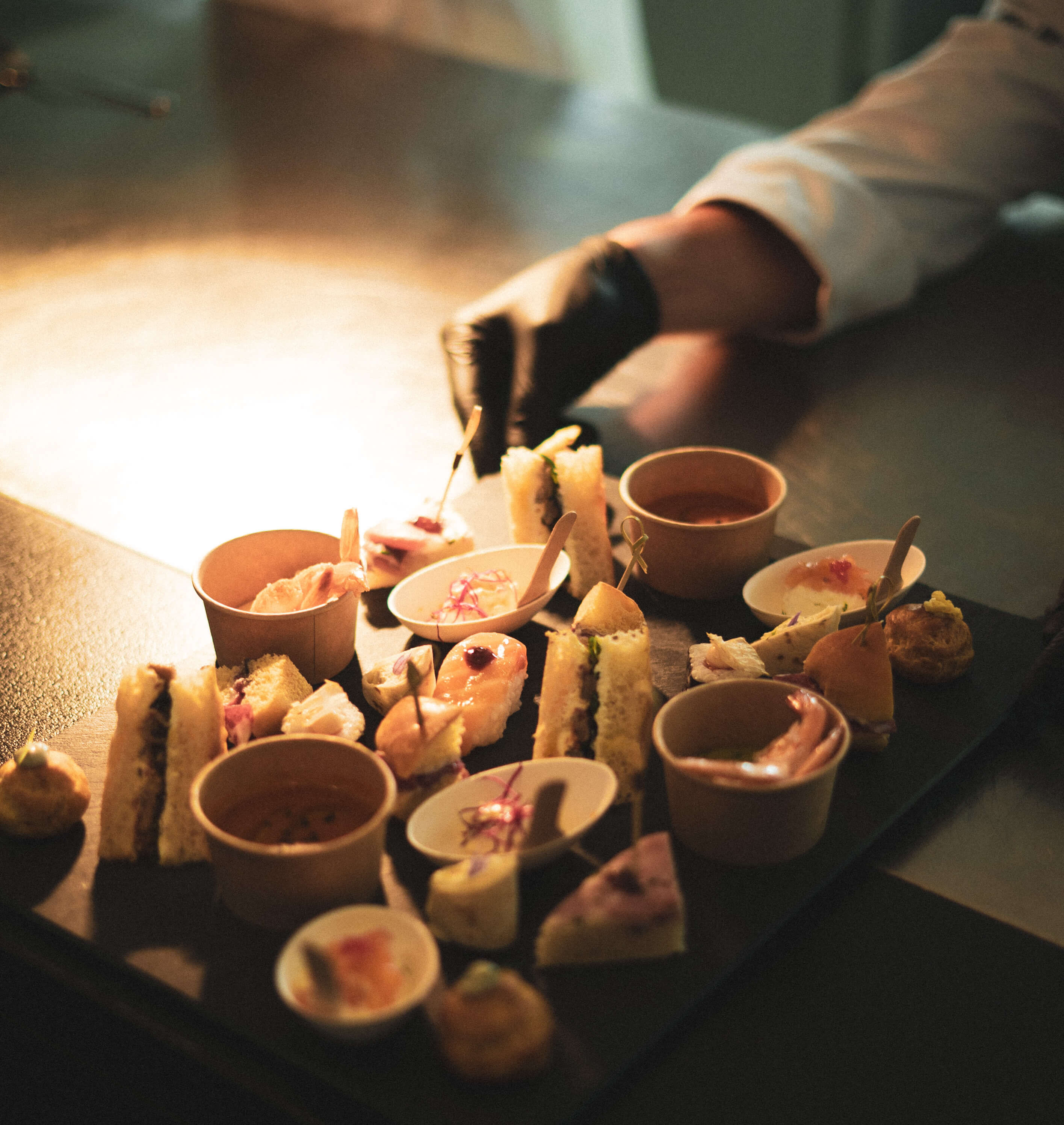 Nous chérissons chaque moment de cette expérience, de la mise en place d'une vaisselle raffinée à l'agencement de tables somptueuses. Et si le lieu le demande, nous apportons une cuisine mobile pour garantir une exécution parfaite.